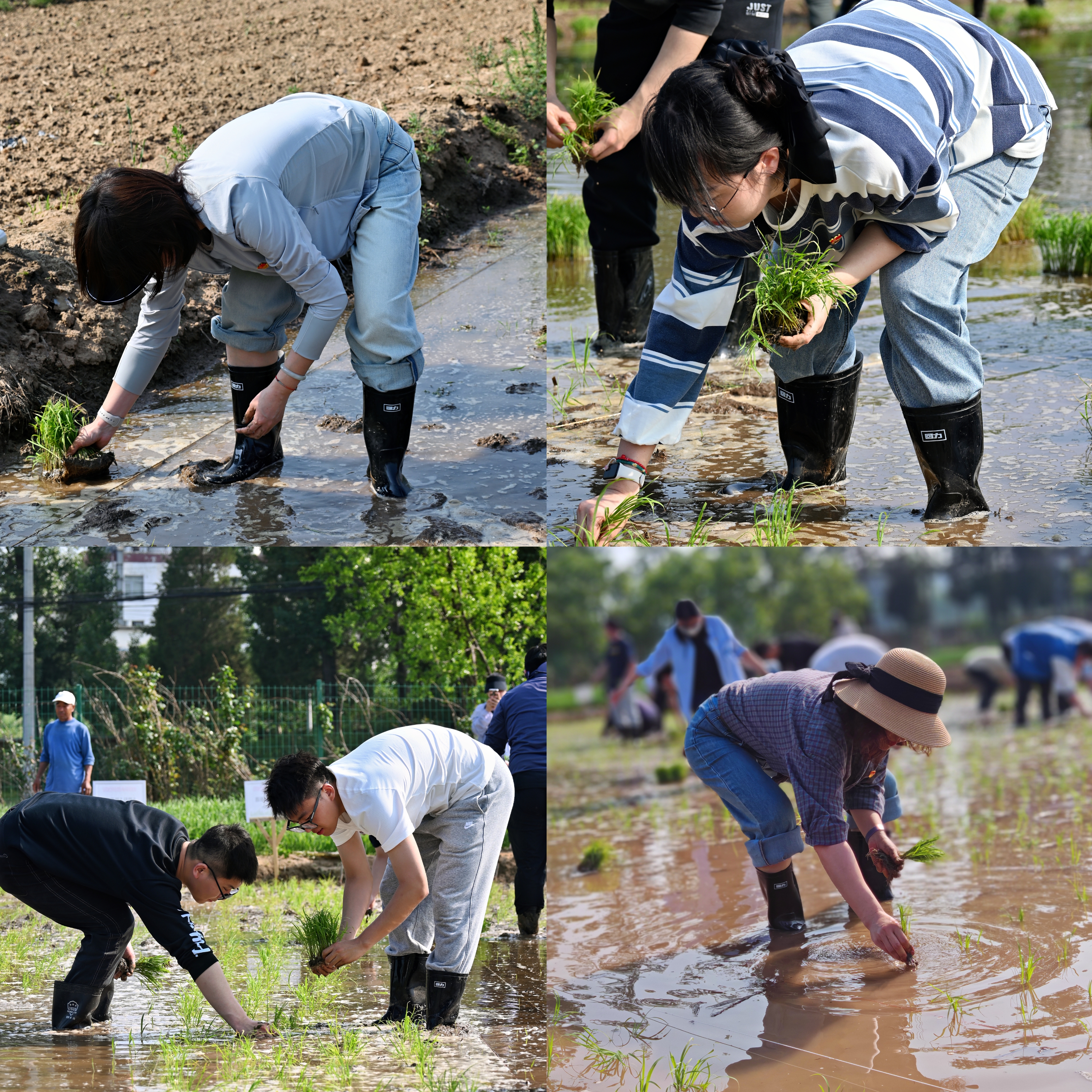 师生在田中插秧