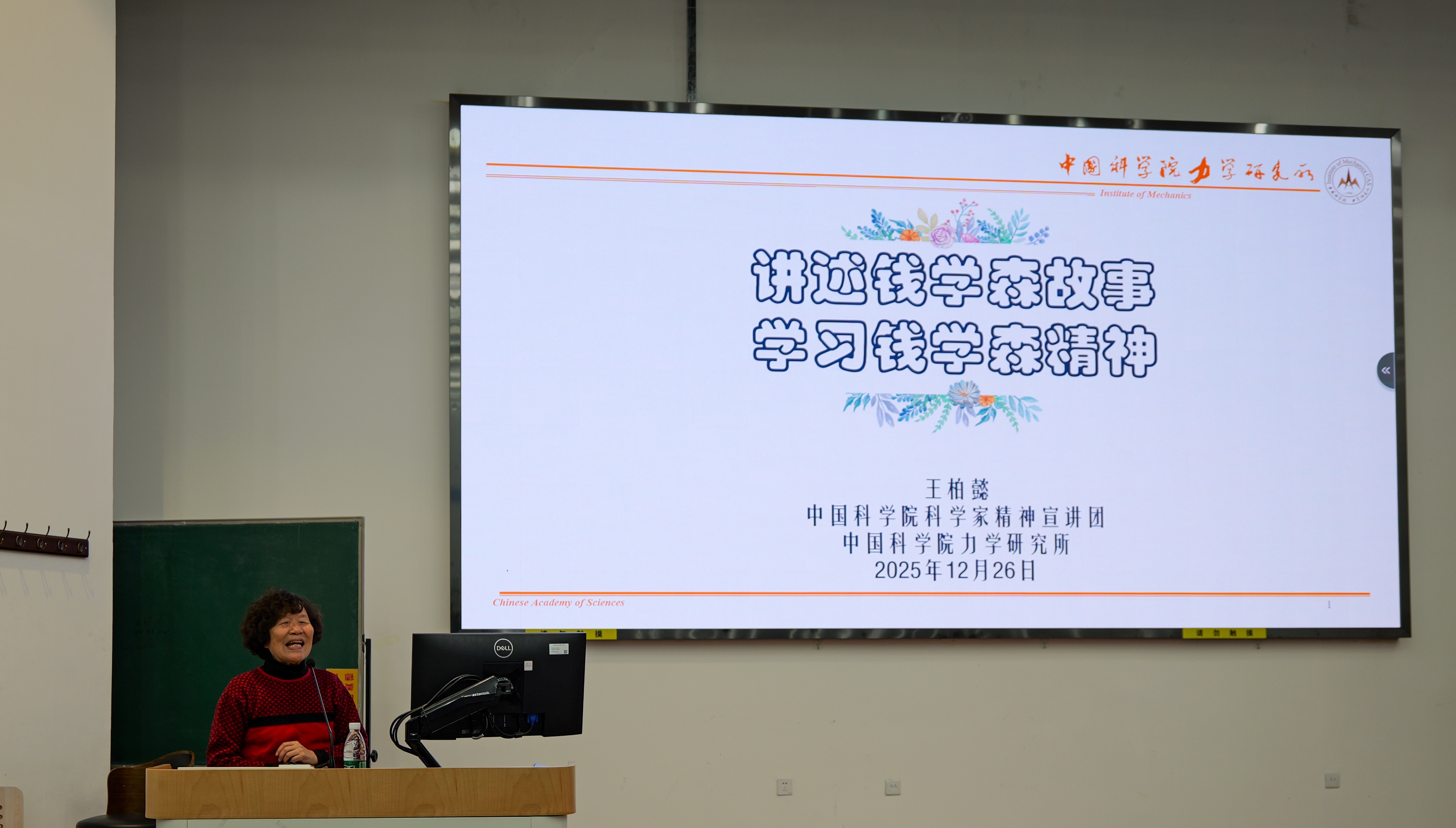 为传承“两弹一星”精神、弘扬科学家精神,12月26日,适值毛泽东同志诞辰132周年纪念日,中国科学院大学计算机网安密码学院党委在玉泉路校区举办弘扬科学家精神报告会,邀请中国科学院科学家精神宣讲团专家王柏懿研究员为师生作题为《讲述钱学森故事、学习钱学森精神》专题报告。330余名师生党员、入党积极分子和入党申请人在玉泉路校区主会场和雁栖湖校区视频分会场参加报告会。报告会由计算机网安密码学院党委书记李剑主持。