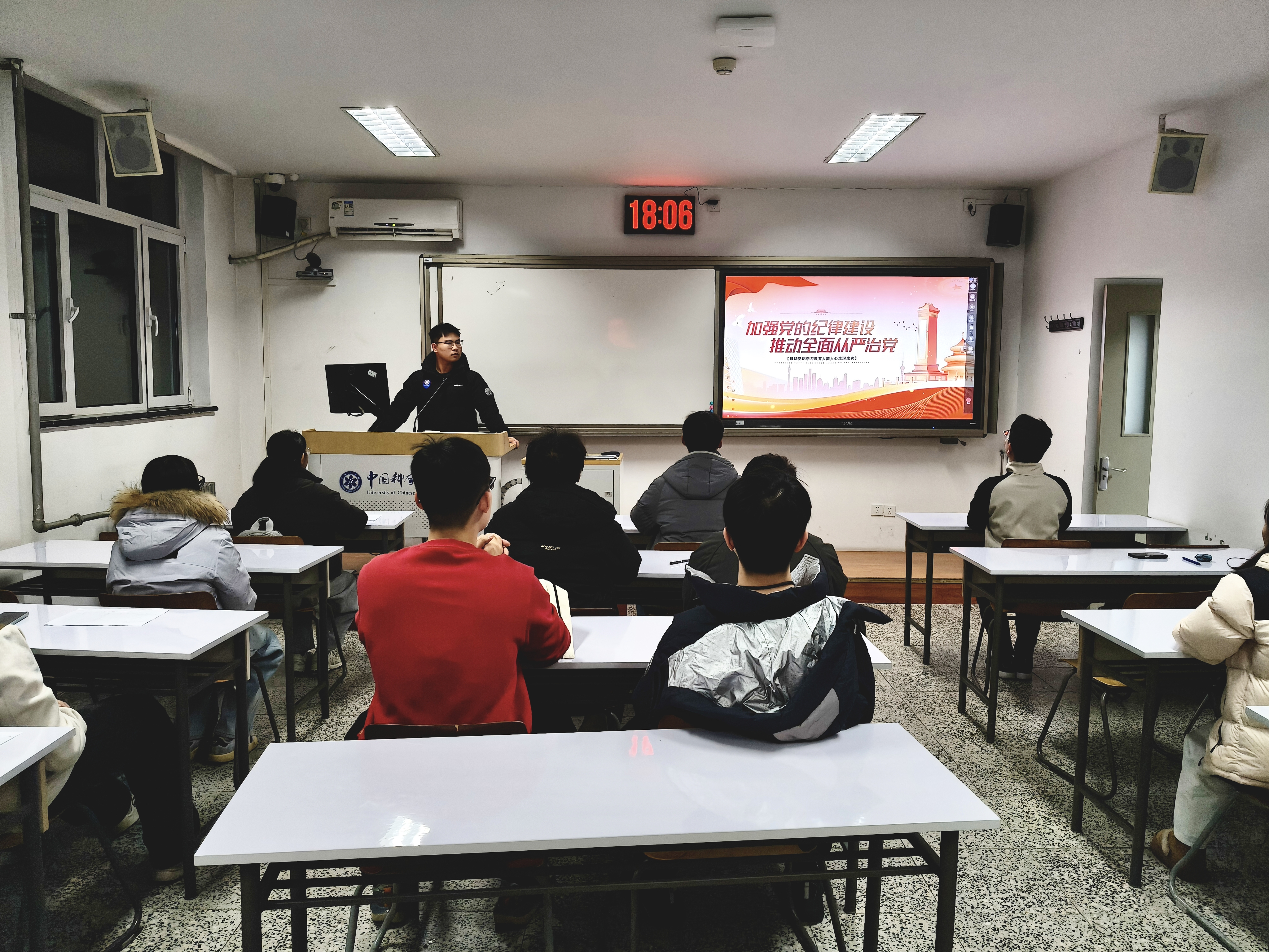 会议伊始,党支部书记陈彬指出,青年党员是党的事业薪火相传的中坚力量,纪律建设是青年党员成长成才的“压舱石”。作为新时代学生党员,既要在学术科研中追求卓越,更要在纪律作风上作出表率,以严明的纪律规矩校准青春航向,让初心使命在严格自律中愈发坚定。他强调,本次专题学习旨在帮助全体党员厘清纪律边界、明确行为规范,切实将纪律要求转化为日常学习生活的自觉行动,为支部建设和个人成长奠定坚实基础。