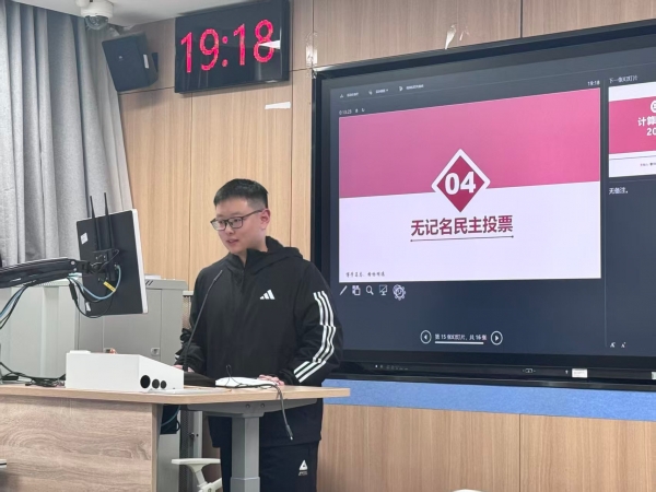 在团组织推优环节,入党申请人林钲棠详细汇报了近期思想动态、学习情况及入党动机,希望能够成为一名入党积极分子,在党组织的培养下更好地服务同学、奉献集体。经无记名投票表决,林钲棠同学被推选为入党积极分子。