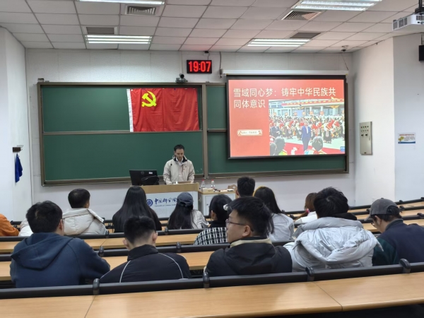 会议伊始,党支部书记巧吉依尼指出,铸牢中华民族共同体意识关乎国家统一、民族团结与边疆稳定;西藏作为重要的边疆民族地区,其发展实践是中华民族共同体意识的生动缩影。本次学习会以“雪域同心梦”为主线,旨在通过学习习近平总书记重要论述、回顾西藏发展成就、明晰治藏方略,让全体成员深刻理解民族共同体意识的历史必然性与时代价值,引导同学们把思想认同转化为行动自觉。