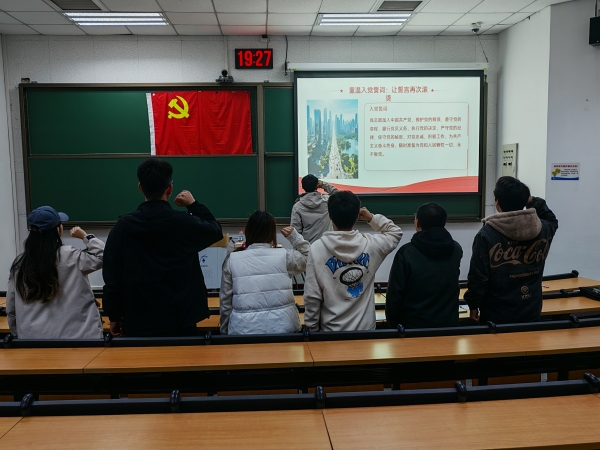 最后,支部成员共同唱响《国际歌》。激昂的旋律、坚定的歌声,将班会氛围推向高潮,进一步凝聚了 “团结奋斗、共筑共同体”的信念,让“为人民谋幸福、为民族谋复兴”的初心使命更加深入人心。