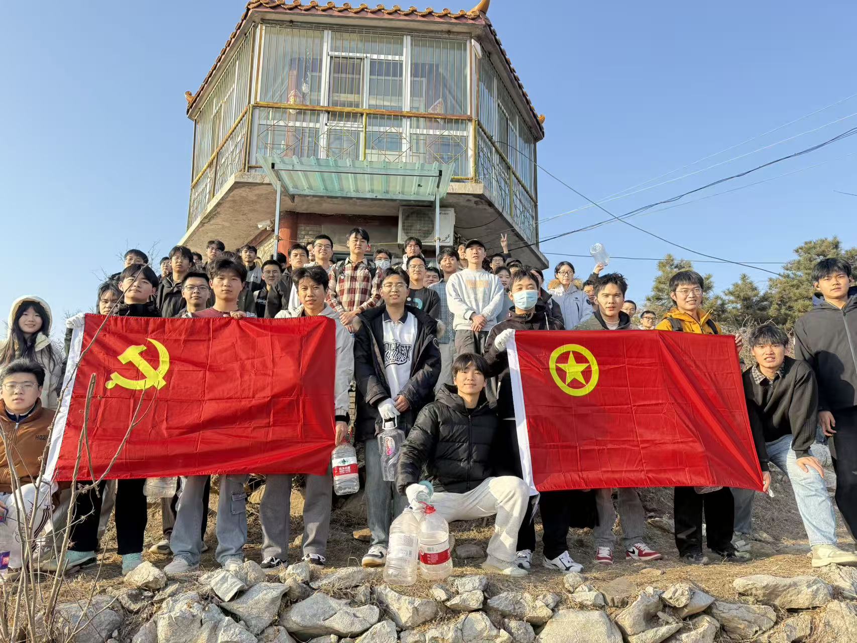 活动临近结束,同学们在瞭望塔前合影留念,定格下这段难忘的公益时光。下山途中,团支部书记安睿康与同学们分享感悟:“作为共青团员,我们既是‘坚守行动’的传承者,更是青年责任的践行者。14名共青团员与党员同志并肩同行,在登山中学会协作,在奉献中懂得担当,这份经历会成为我们成长路上宝贵的财富。未来,我们要继续以青春之名,赴时代之约,让奉献精神在青年一代中薪火相传。”同学们的脚步虽有些沉重,但内心却充满了前所未有的充实与坚定,大家纷纷交流着此次活动的感悟,分享着对“坚守”与“奉献”的全新理解。
