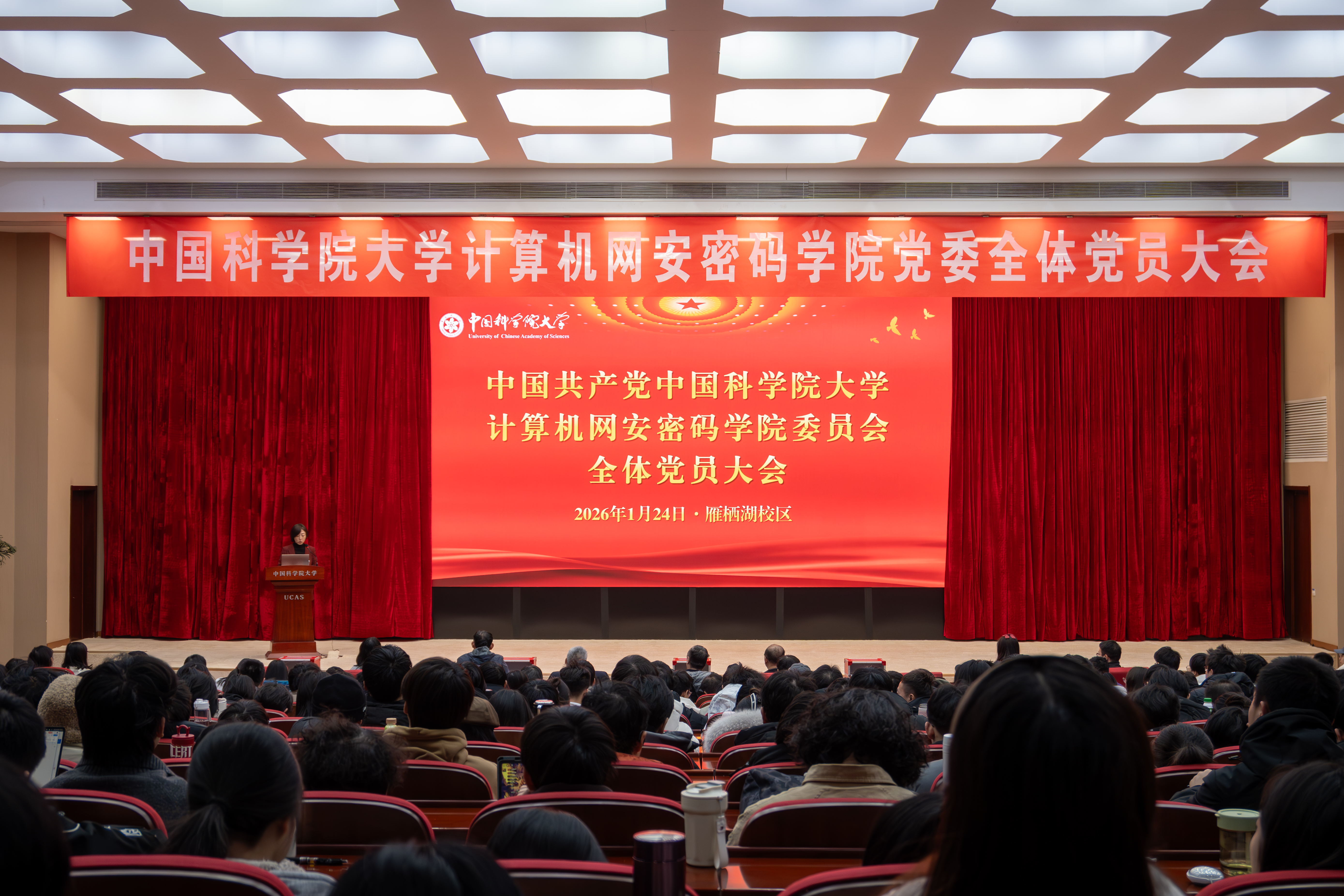 1月24日上午,中国科学院大学计算机网安密码学院党委在雁栖湖校区国际会议中心报告厅召开全体党员大会,选举产生学院党委出席中国共产党中国科学院大学第十一次党员代表大会代表。会议由学院党委书记李剑主持。大会应到会正式党员430名,实到会409名,符合规定人数,会议有效。