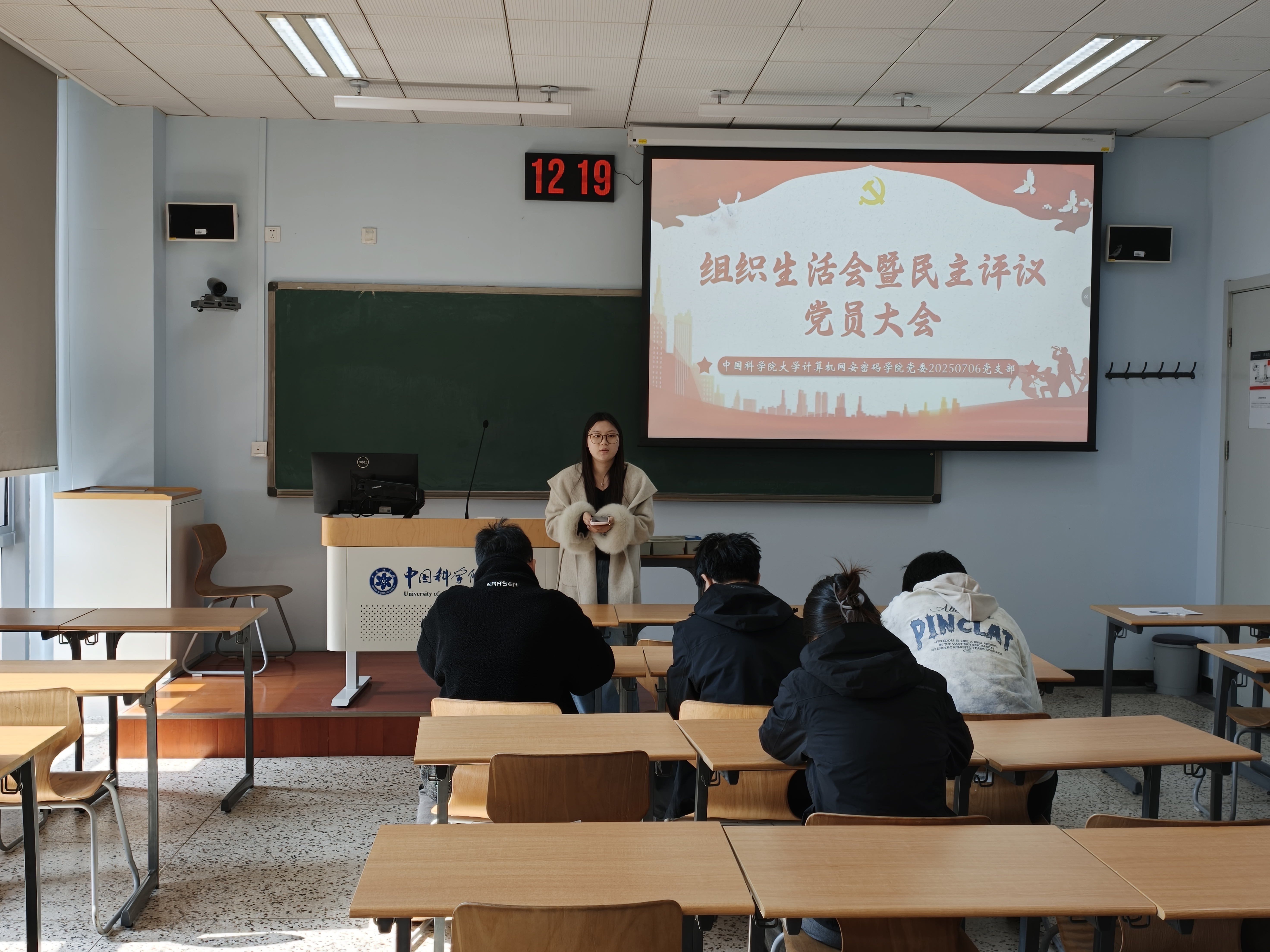 3月16日,中国科学院大学计算机网安密码学院党委20250706党支部在雁栖湖校区教一楼121教室召开2025年度组织生活会暨民主评议党员会议。会议由党支部书记王志远主持,党员班主任史慧洋老师列席会议。