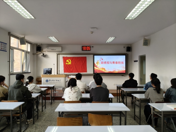活动伊始,全体党员共同观看央视新闻专题片《为民出政绩 实干出政绩》。影片围绕正确政绩观的核心内涵展开,以权威解读与鲜活实践,深刻阐明“政绩为谁、树什么样的政绩、靠什么树政绩”的根本问题,强调为民造福是最大政绩、实干担当是成事之基,为青年党员成长成才提供了思想指引与行动遵循。观看过程中,全体党员认真聆听、深入思考,深刻认识到正确政绩观并非远离校园的宏大命题,而是青年党员立身行事、求学科研的重要准则。